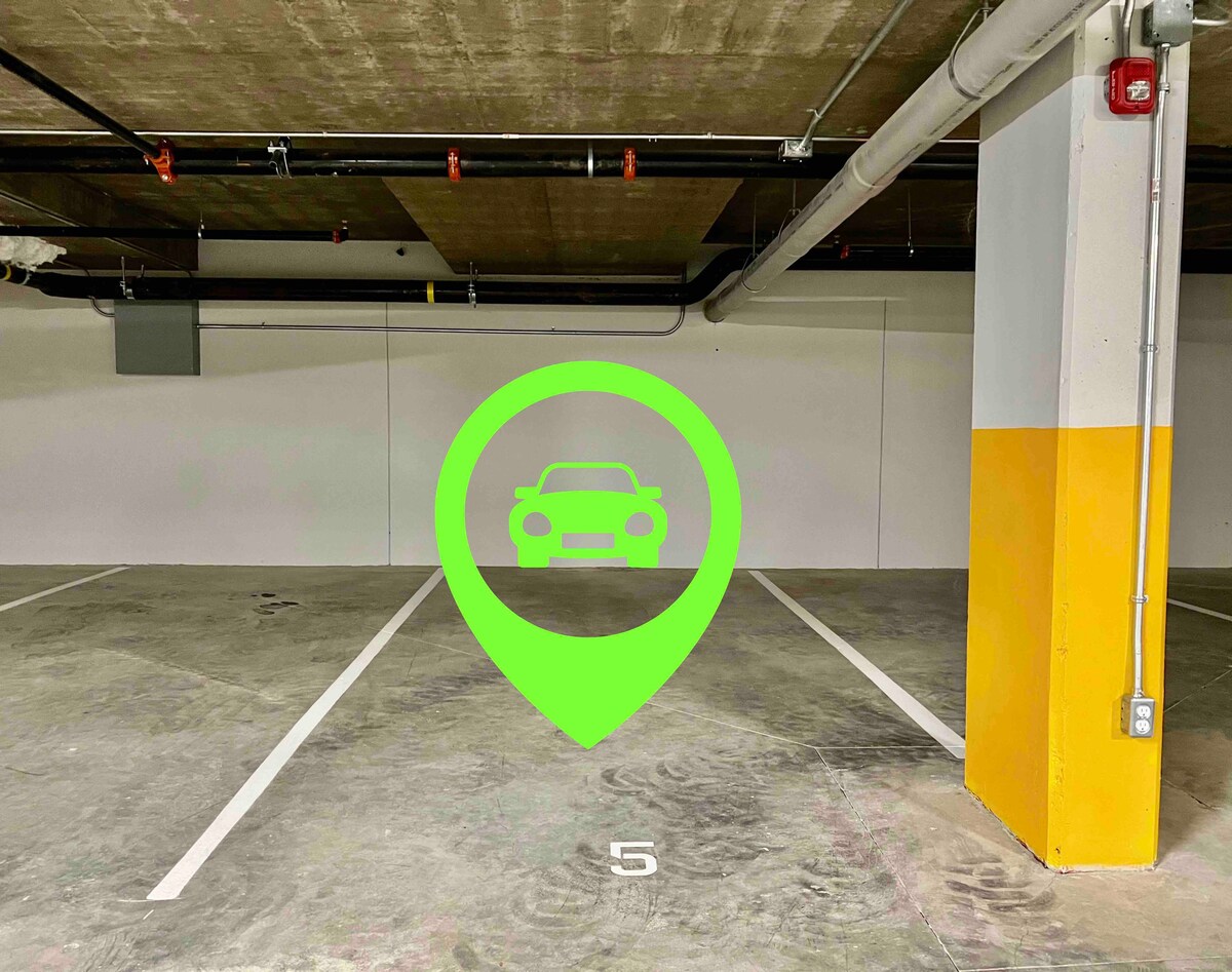 Guests have access to a free dedicated parking spot and additional visitor parking.